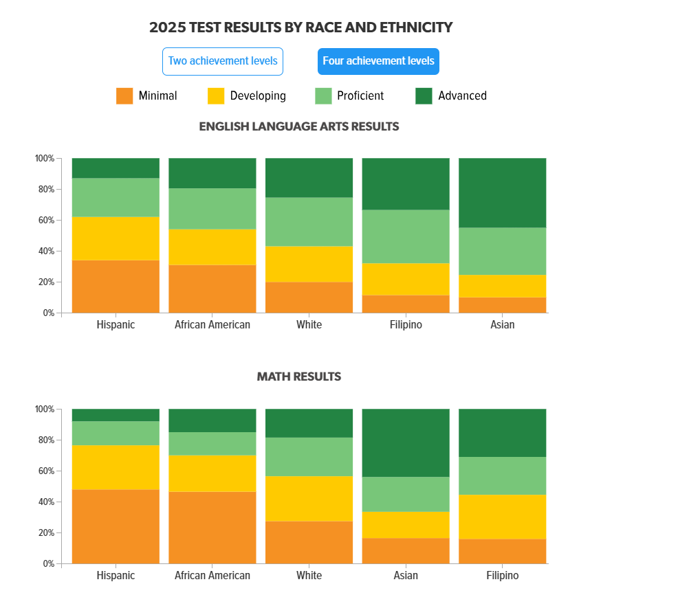 The 2025 CAASPP Test Results from Simi Valley Unified School District paint a troubling picture that appears to mirror broader community dynamics. The new data reveals persistent and widening achievement gaps that disproportionately impact Black and Hispanic students under the leadership of Superintendent Hani Youssef. The data raises a disturbing question: Has the educational culture created by Superintendent Youssef embedded systematic racism into the educational experience of Black and Hispanic students?